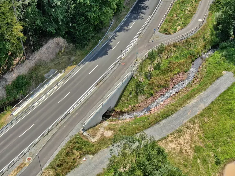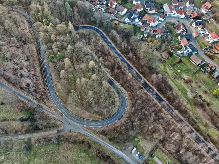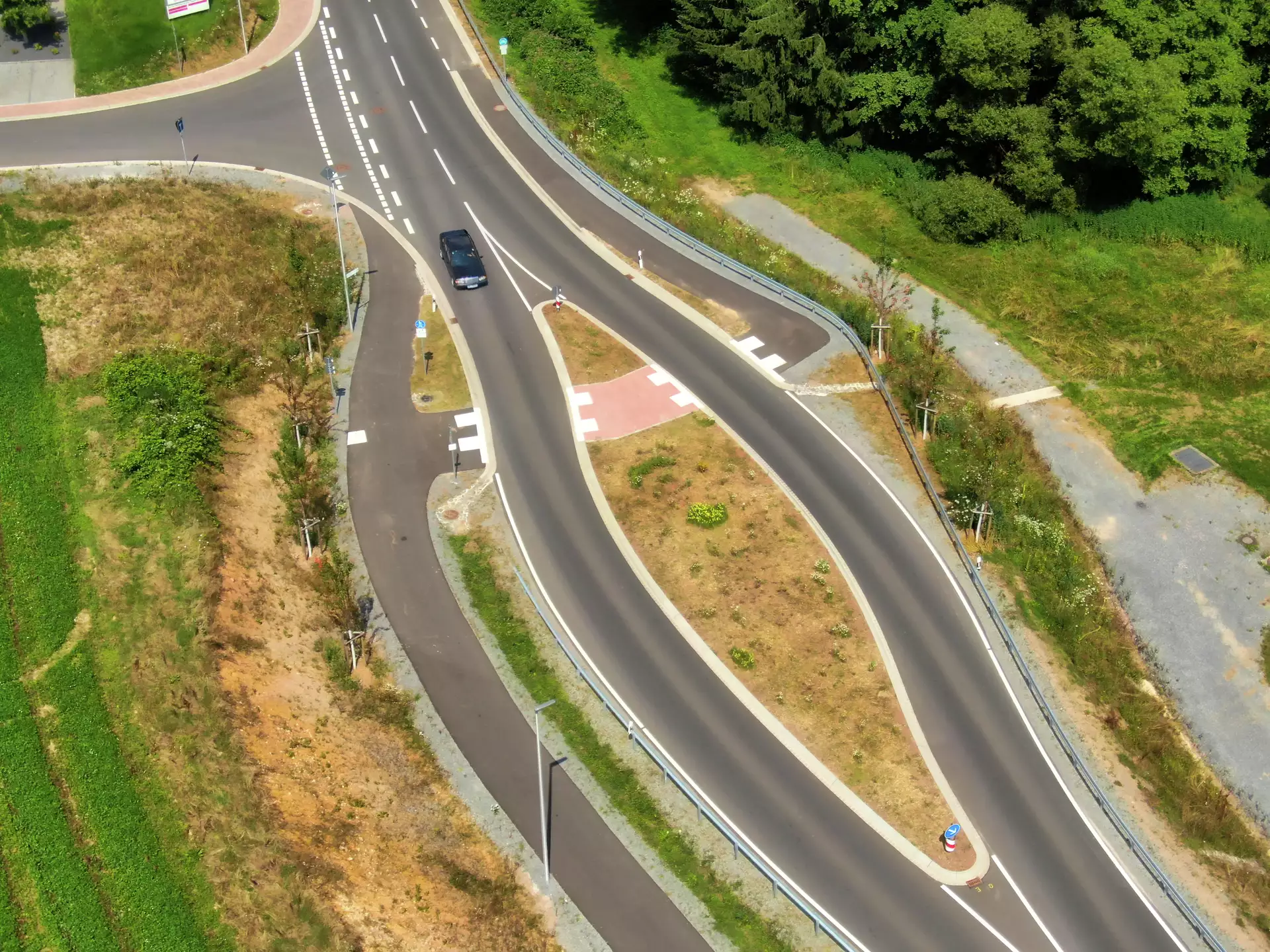 Strassenbau: Kreisel Omersbach nach Fertigstellung